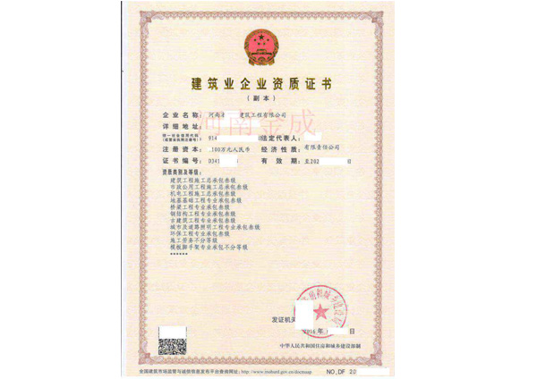 • 建筑業企業資質證書副